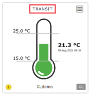 • Furthermore, the sensor's alarm status is visualized. The background color indicates whether there is an active alarm or warning for the corresponding sensor:Dashboard_Background color