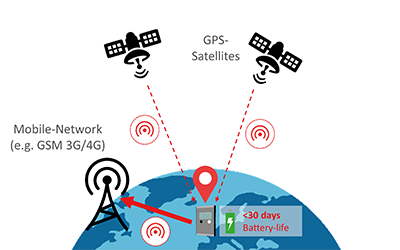 Geräte, die LPWAN verwenden, verfügen über zwei Protokolle, die beide für den jeweiligen Zweck optimiert sind: LTE-M für mobile Anwendungen, die unterwegs sind, und NB-IoT für stationäre Anwendungen. Beide Protokolle sind darauf ausgelegt, Energie zu sparen und führen zu einer wesentlich längeren Batterielebensdauer als herkömmliche Ortungs- und Real-Time-Überwachungsgeräte.