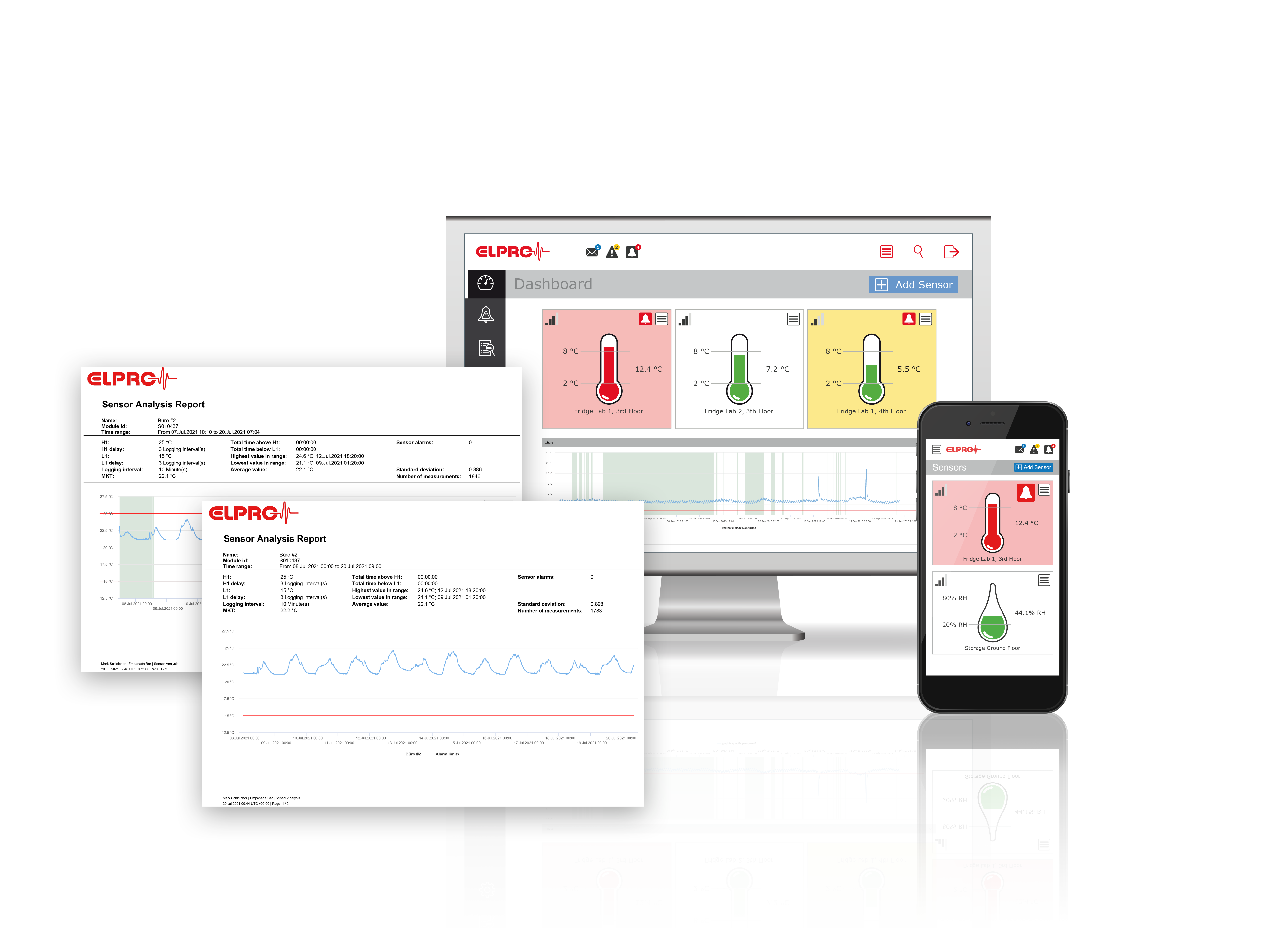 ELPRO-Systeme lösen automatische Alarme aus, um das Personal zu alarmieren. Dies ermöglicht sofortige Massnahmen zur Korrektur der Umgebungsbedingungen und zur Vermeidung von Schäden.