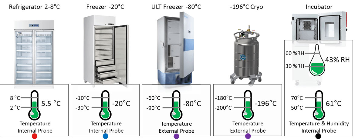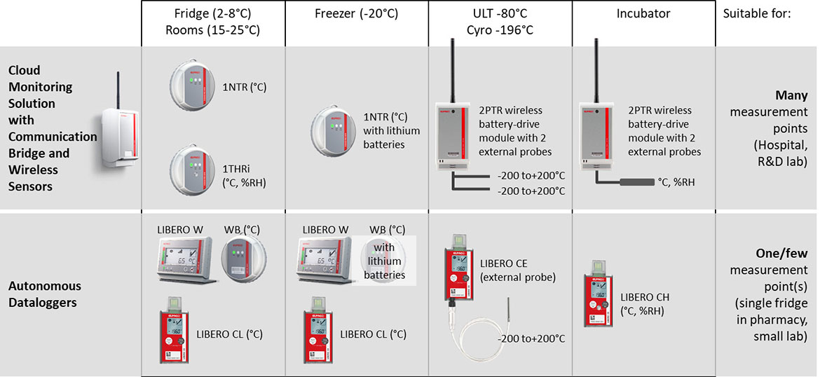 - Kabelgebundene und Funk-Datenlogger für einzelne oder mehrere Kühlschränke