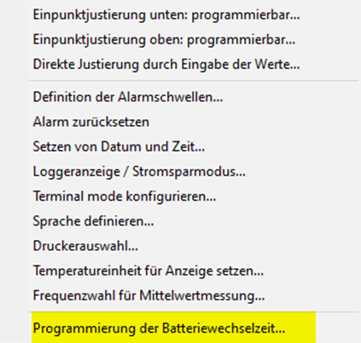 Wie kann die Batteriewechselzeit gesetzt werden?