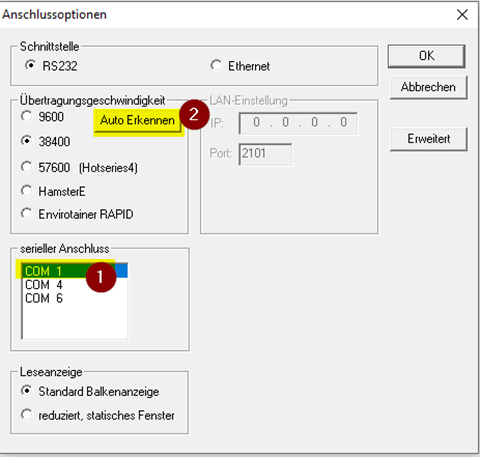 Klicken Sie auf Optionen / Anschluss / Auto Erkennen und dann auf jeden einzelnen "COM" bis "Logger found" angezeigt wird.