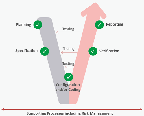 Eine computergestützte Systemvalidierung (CSV) ist der dokumentierte Prozess, der überprüft, ob ein computergestütztes System genau das tut, was es auf konsistente und reproduzierbare Weise tun soll. Sie folgt dem V-Modell, d.h. die Anforderungen müssen dokumentiert, Validierungs- und Testpläne geschrieben, die Risiken in einer schriftlichen Risikobewertung bewertet, die Funktionalitäten getestet und entsprechend dem Testplan dokumentiert und schließlich ein Validierungsbericht erstellt werden, der alle Validierungsbemühungen zusammenfasst.
