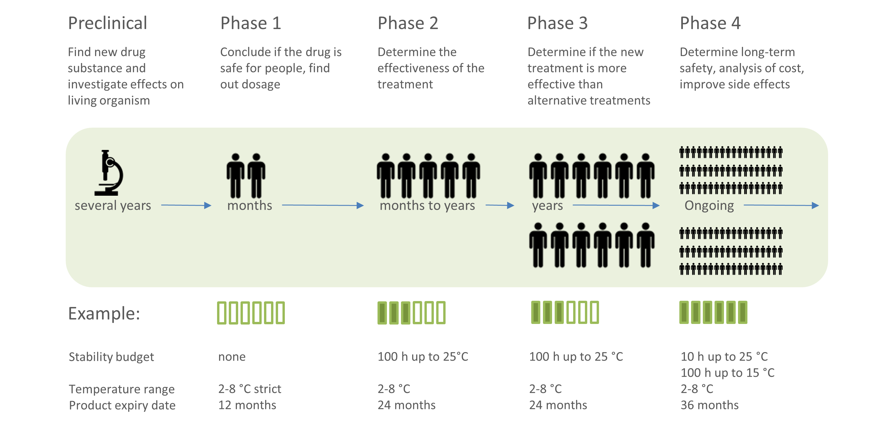 An example: A biopharmaceutical company has found a new drug substance and they are ready to perform clinical studies on patients. The product has a liquid form and is stored refrigerated.