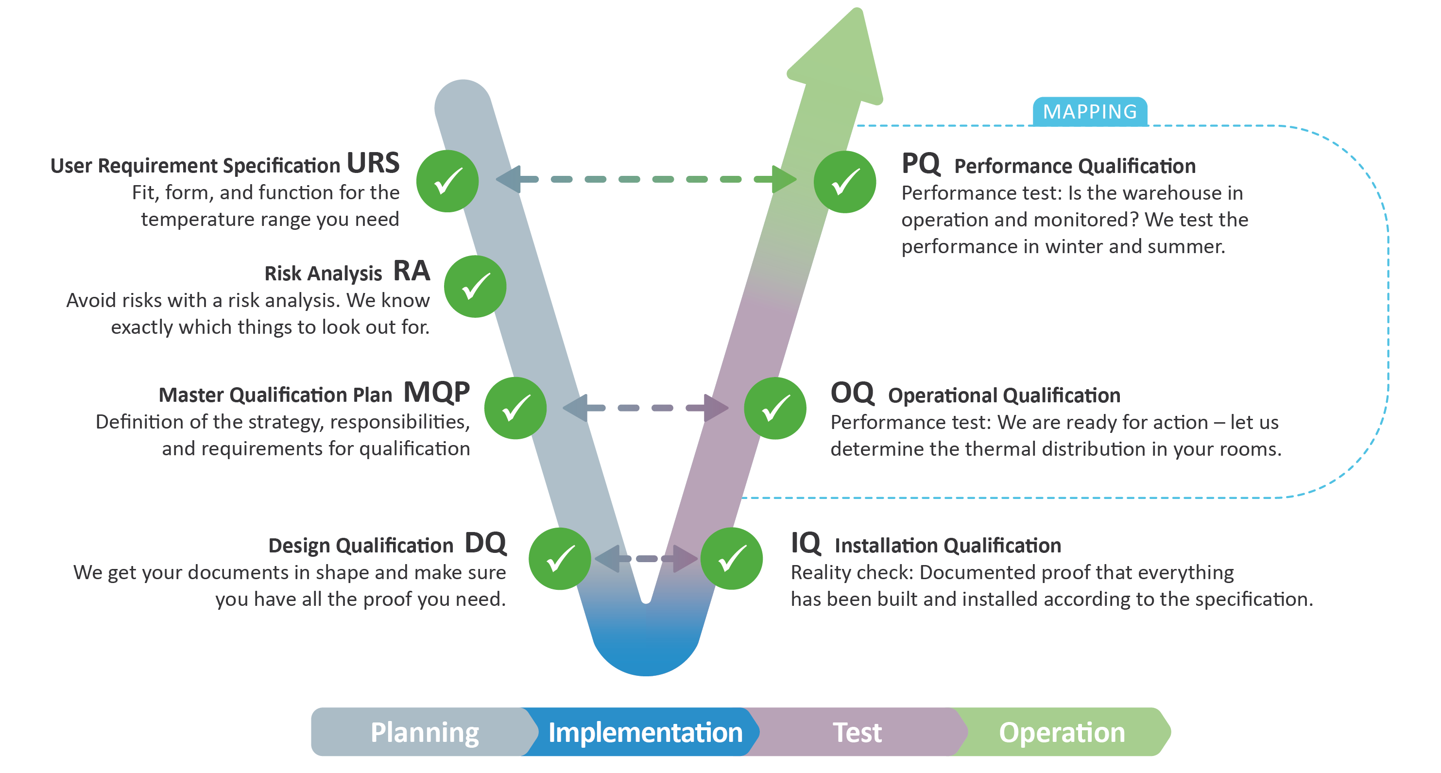 The V-model enables compliance, and you can choose the phase where our expert knowledge best supports your GxP compliance needs.