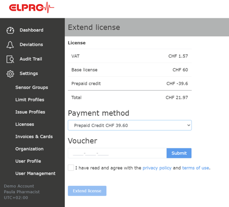 Please note, if you only use vouchers, licenses cannot be renewed automatically, even if you have sufficient credit in your elproCLOUD account.