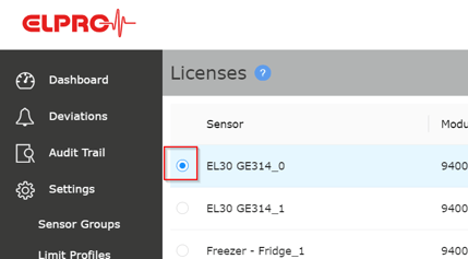 - To manually extend the license for another year, select the sensor to be extended using the radio button on the left.