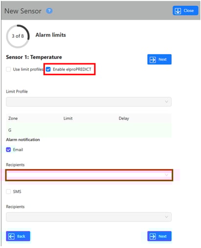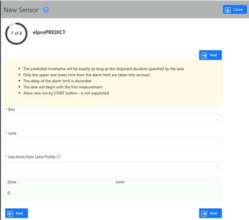 Please note that elproPREDICT applies strict alarms without considering and alarm delay mechanisms. Moreover, multi-alarm zones are not supported in this predictive analytics environment.
