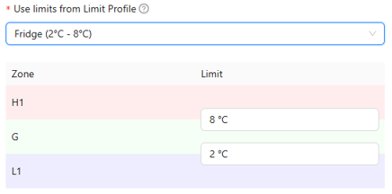 Limit Profile: Select the temperature profile for the shipped material (payload), e.g. +2..+8 °C.