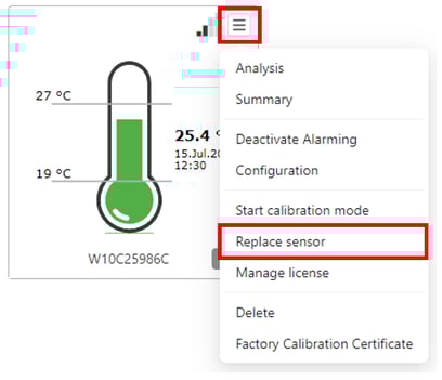 2.1 Click on the menu icon and select "Replace sensor" tab from the menu.