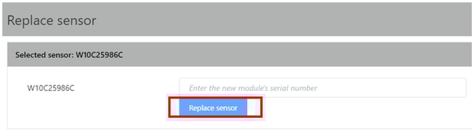 2.2 Enter the ID of the new sensor module into the field and click on "Replace sensor".
