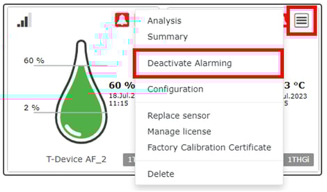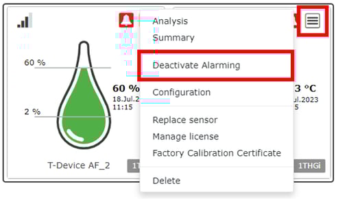 - Go again to the sensor menu in the elproCLOUD to activate the alarming.