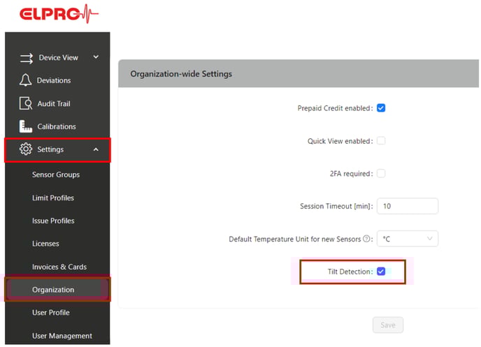 In the "Settings" – "Organization" menu, you can activate tilt detection.