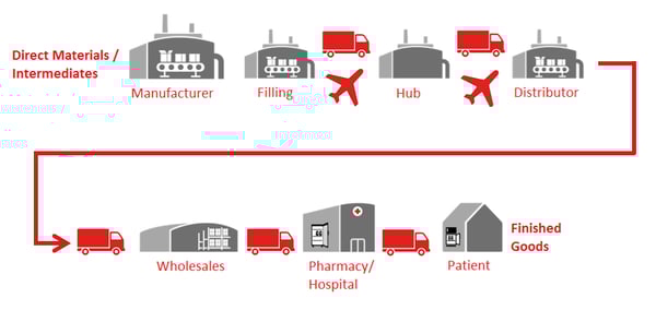 Like most supply chains of industrialized products, the pharma supply chain is complex and consists of multiple steps. Furthermore, the supply chain of every pharmaceutical product looks different and depends on the product complexity as well as the production region. While expensive products like genetically engineered drugs typically have a very short supply chain, low-price over-the-counter drugs like Aspirin have a much more complex supply chain with multiple steps between production and patient. What all pharma supply chains have in common is the distinction between the transportation of Active Product Ingredients (API) and finished packaged products. Lately, the scope of temperature data monitoring is increasingly including the last transportation mile to the pharmacy or even to the patient. Direct-to-Patient-Shipments (DtP) are becoming increasingly popular and important, especially with regards to clinical trials but also for personalized drugs.